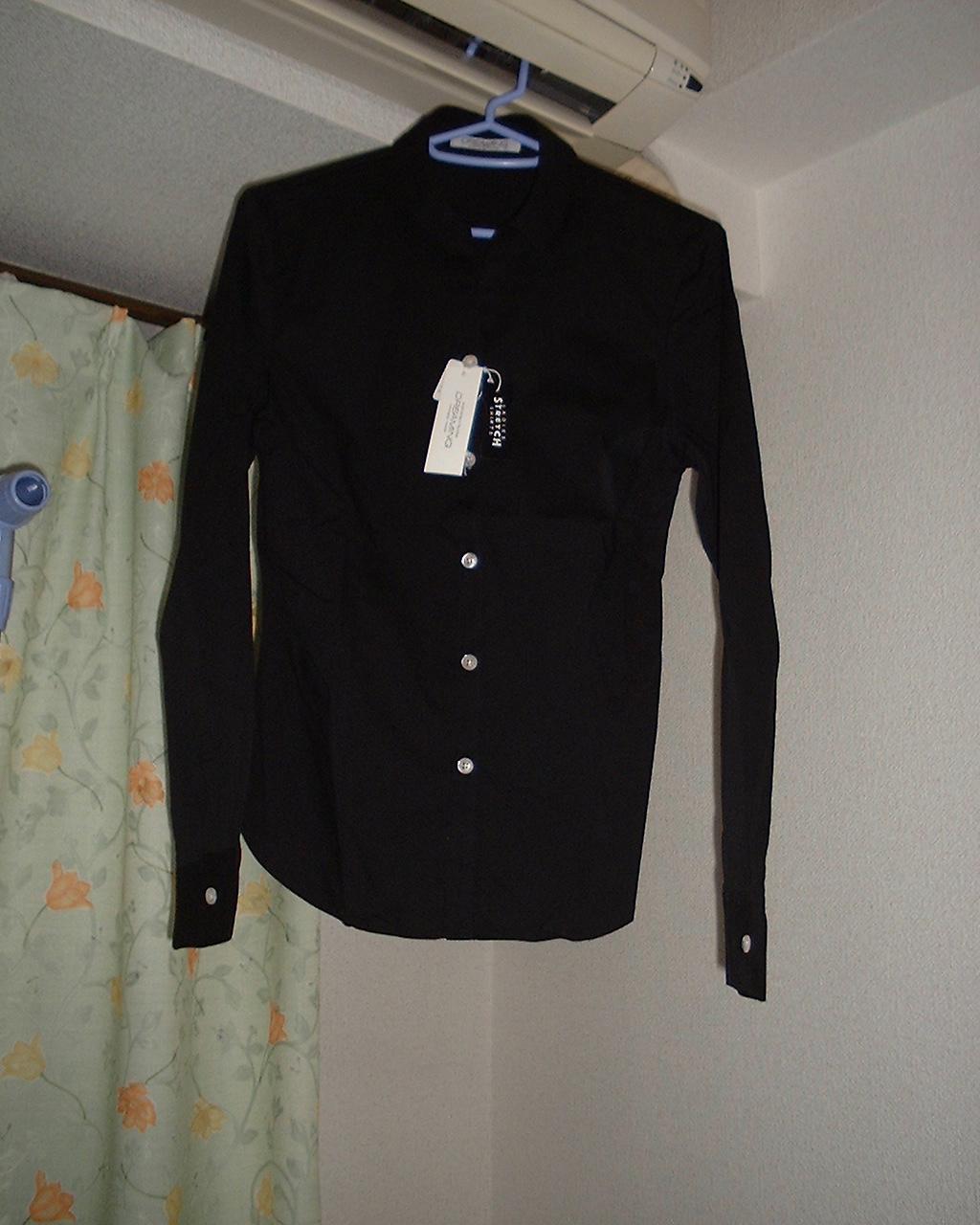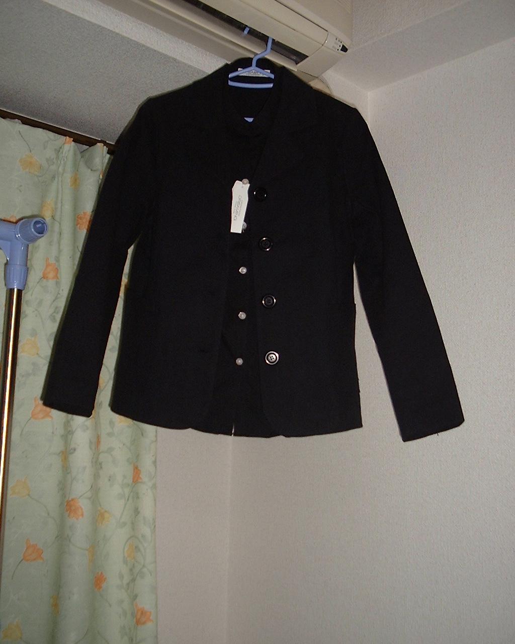黒のジャケットと黒のシャツやしな.