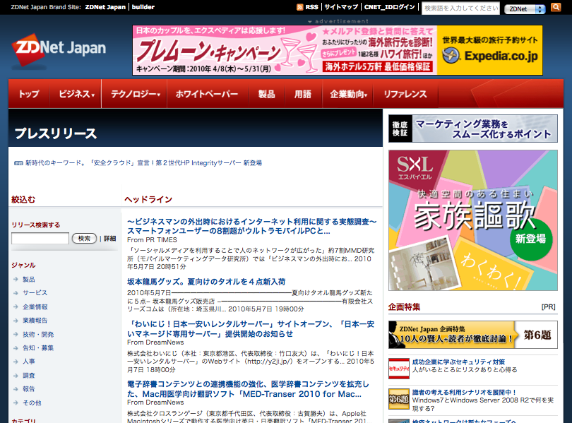 も、うちのプレスリリース取り上げてくれたの初めてやな。最初からサイトが用意してあって、これくらいインパクトがないとあかんのかなぁ。まぁ、新サービスぢゃなくて、新サイトってところもでかいか。