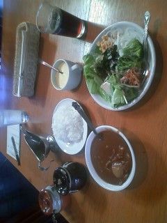 あさくま、初めて行ってきた。これで\1,880…。ランチは\200引きって説明があった気がするけど、これは対象ぢゃないんやな…。メール会員の登録しておいたから、ドリンクバーは無料。本来は別料金。少し高級なステーキガストって感じかな。サラダバーに付いてる牛すじカレーがめっちゃ美味しかったので、一番安い(と言っても\1,580の)やわらか合挽きバーグかチキンステーキ辺りで済ませて、牛すじカレーをメインと思って食べるのが、ここの賢い利用方法かも。